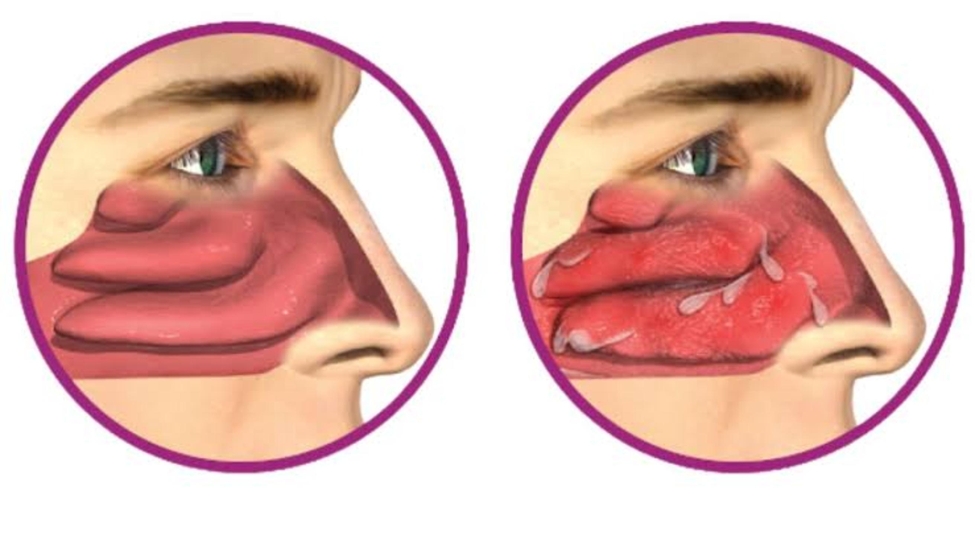●ცხვირი – ცხვირიდან წყლიანი გამონადენი, ცხვირის არხის ჩაკეტვა, ცემინება, ცხვირის ქავილი, პოსტნაზალური ჩანადენი, გემოვნების დაკარგვა, სახის მიდამოში ზეწოლის სეგრძნება ან ტკივილი