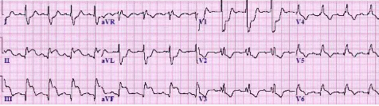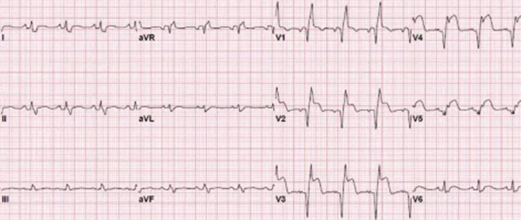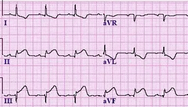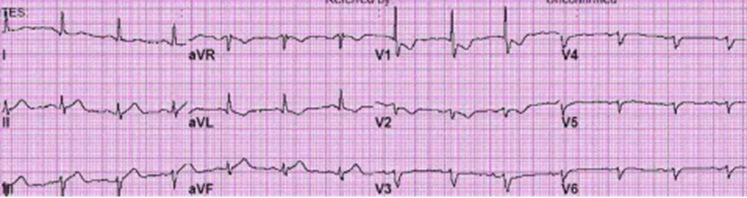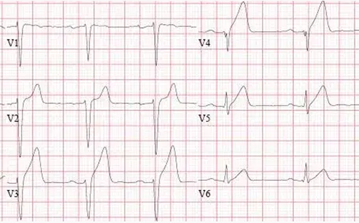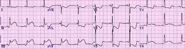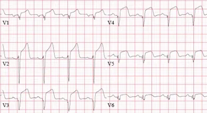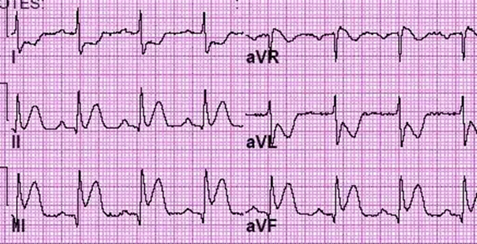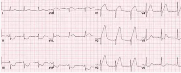 მიუხედავად იმისა, რომ ეკგ არ წარმოადგენს “საფლავის ქვას”, მაინც აღსანიშნავია მნიშვნელოვანი ST სეგმენტის ელევაცია.