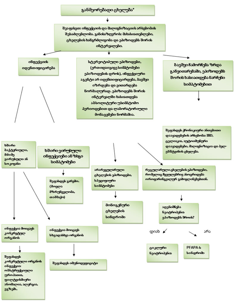 ჩვენი მიდგომა— ჩვენ ვურჩევთ დაკვირვებას, თუ მშობელი ან პაციენტი მკურნალობის წინააღმდეგია, იმის გათვალისწინებით ორმ PFAPA-ს სინდრომი არის თვითლიმიტირებადი დაავადება. (algorithm 1).