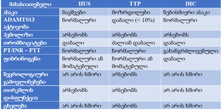 დიფერენციალური დიაგნოზი: HUS, TTP და DIC
